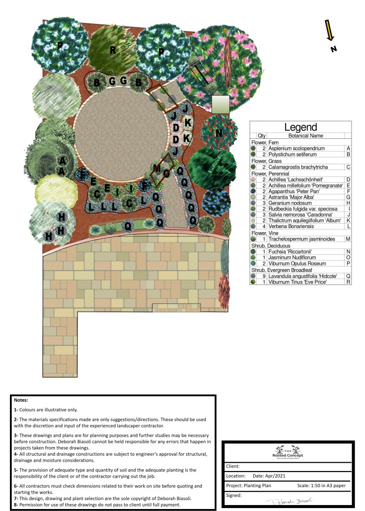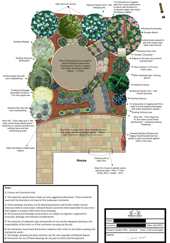 This design was created in order to update a classic patio with lawn and narrow borders back garden in London. A cosy round seating area surrounded by beautiful planting including a layer of trees followed by prairie style and classic perennial plants that provide interest year around was created in the middle of the garden as a social relaxing space perfect for a reunion around the fire pit to unwind at the end of the day. The decking attached to the house was updated as a slightly bigger paved patio to provide a better main space for entertaining. A herbs raised bed surrounding it will bring aromas and ingredients for the BBQ.